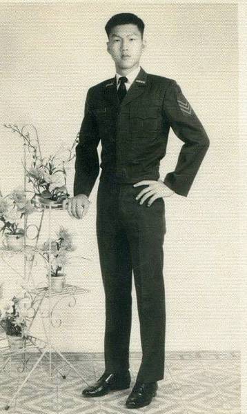 陸軍官校預備學生班15期孫肇宜學長,穿著冬季艾森豪夾克,左側掛著三條勾勾的臂章