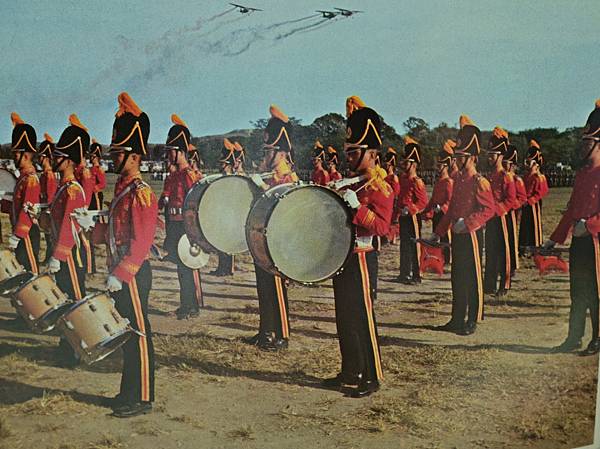 民國53年雙十節國慶閱兵(興漢演習),由右至左空軍幼校典禮服、空軍幼校鼓號樂隊服裝、空軍官校典禮服
