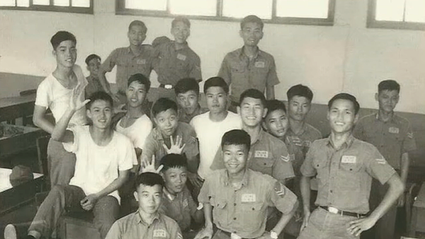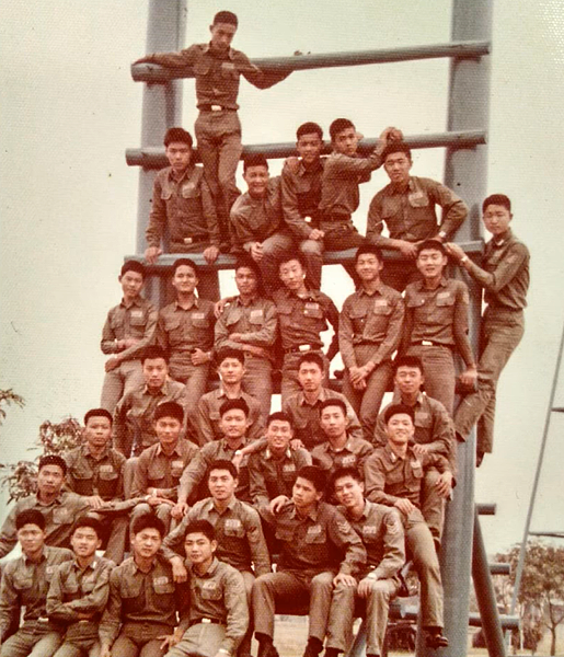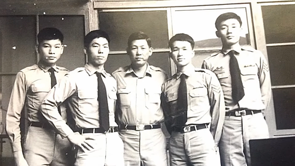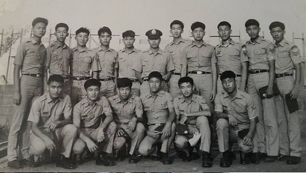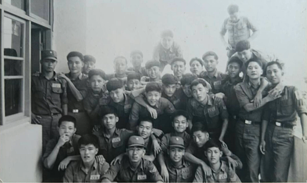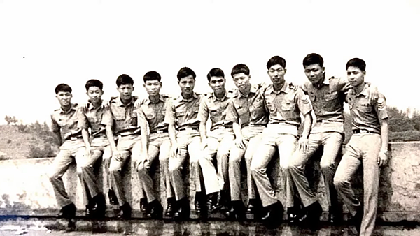 陸軍官校預備班第16期學生,二年級時左臂掛著兩個勾勾一起合影,預備班16期也是在陸軍軍官學校內畢業的最後一期