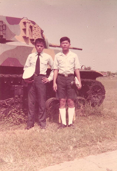 陸軍官校預備班20期(中正預校67年班)三年級時,著中正預校艾森豪冬季小夾克,年級為三條黃槓)(轉載自陸官預備班20期畢于坦學長臉書)