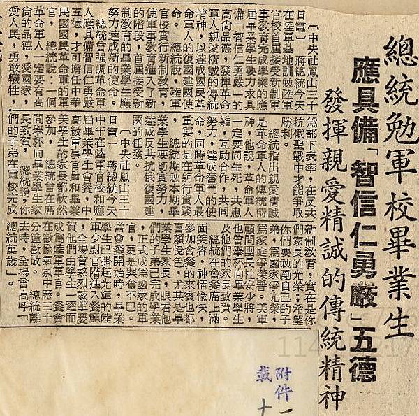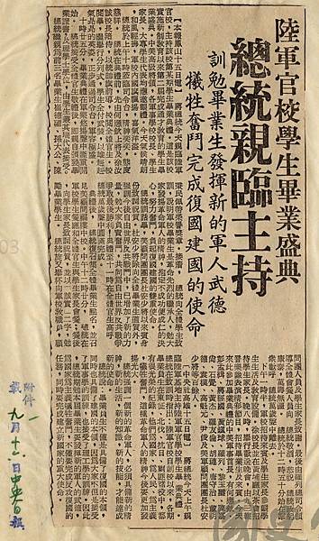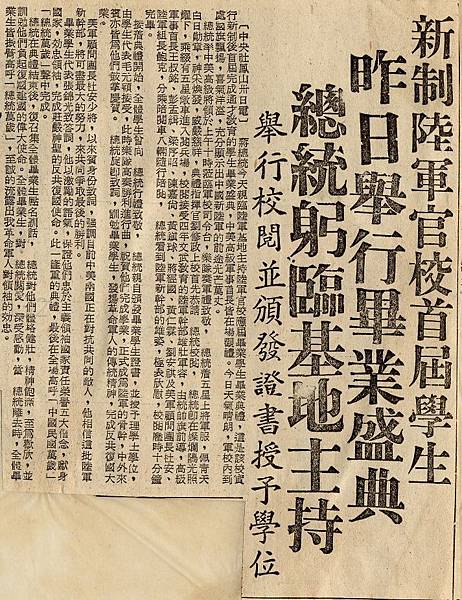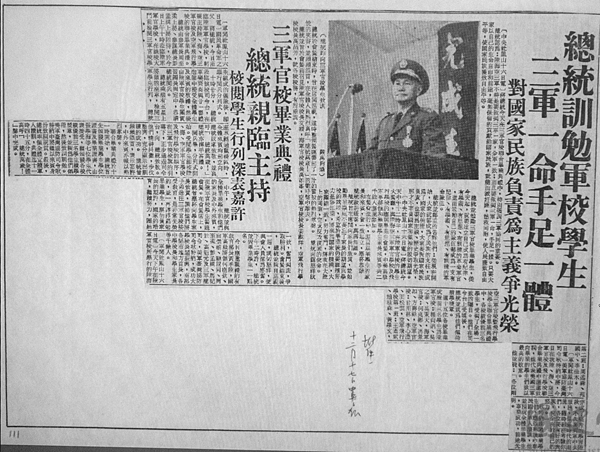 陸軍官校27期畢業,蔣中正總統親自主持,中央日報之簡報