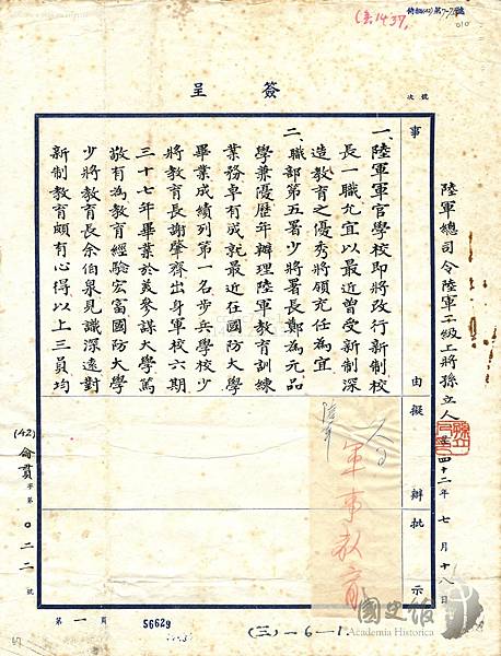 不過,最近找到的資料,當初陸軍總司令推薦新制軍校校長,排名第一的是鄭為元少將,謝肇齊將軍事排名第二,結果總統勾了第二名謝將軍擔任校長。